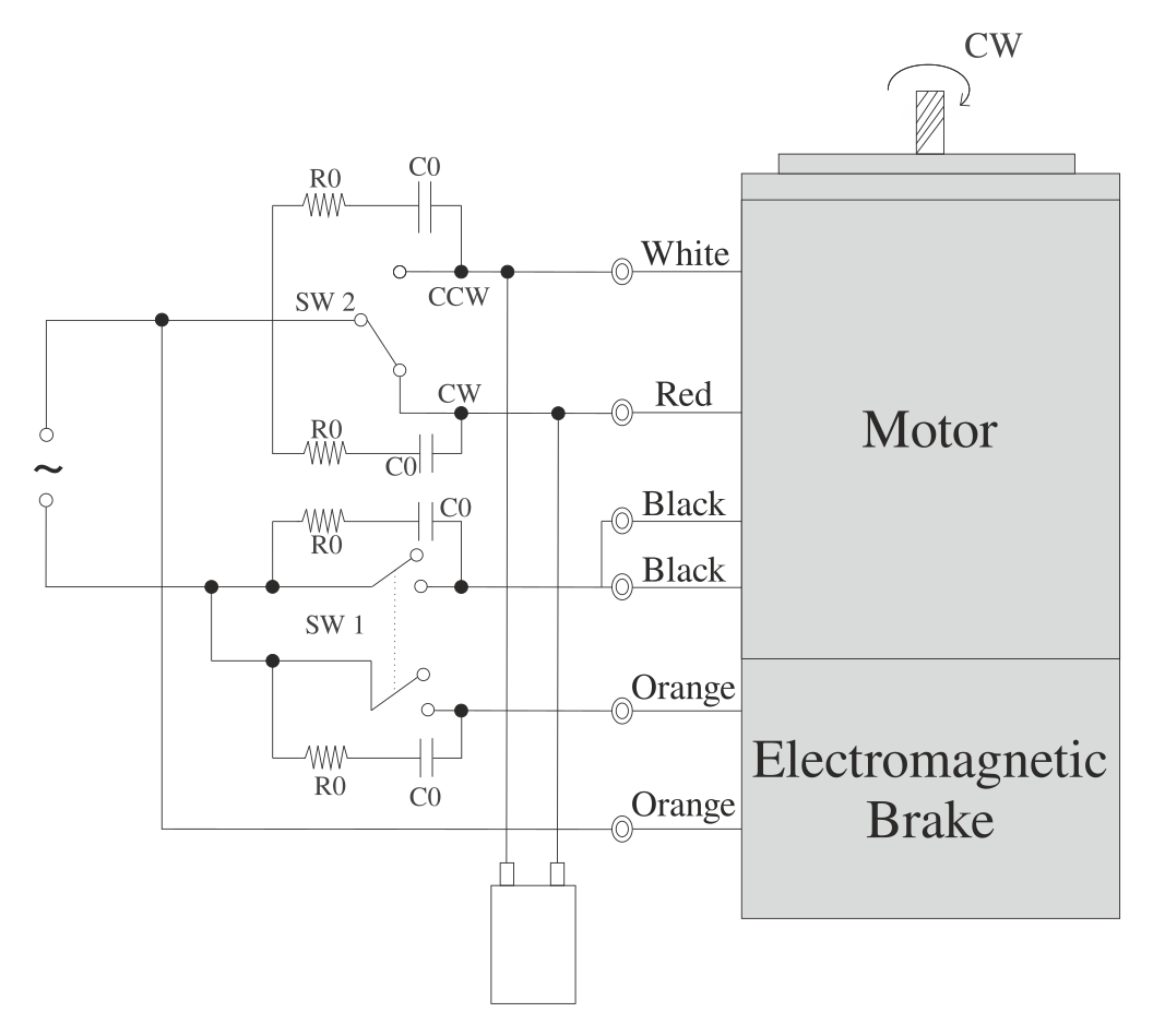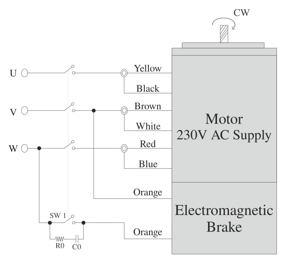 Apply voltage on the orange brake lead wires only, to release the Electromagnetic Brake.